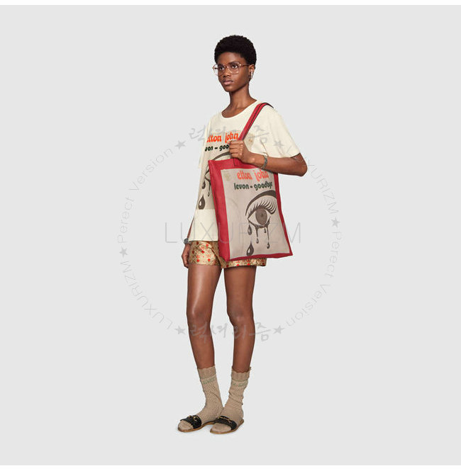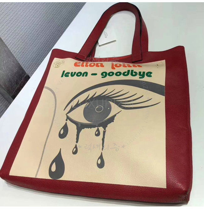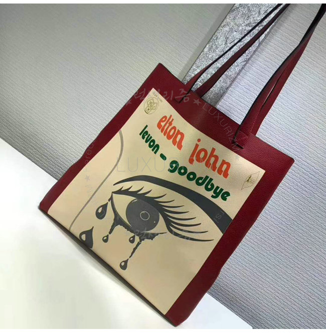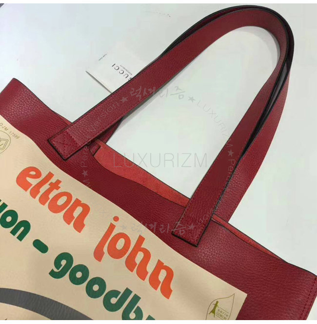 [스페셜오더]GUCCI-519335 6072 구찌 레드 가죽 엘튼 존 프린트 라지 토트백