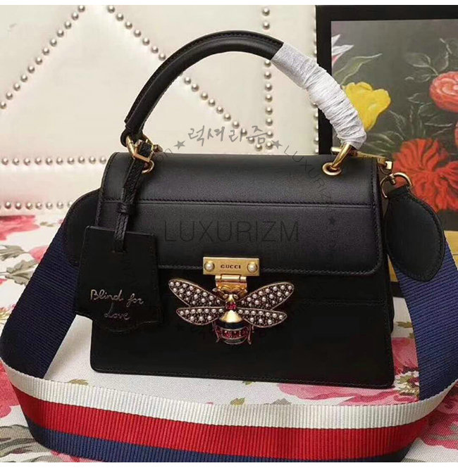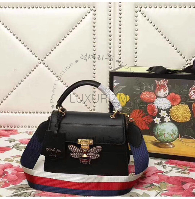 [스페셜오더]GUCCI-476541 8062 구찌 블랙 가죽 Queen Margaret 스몰 탑 핸들 백