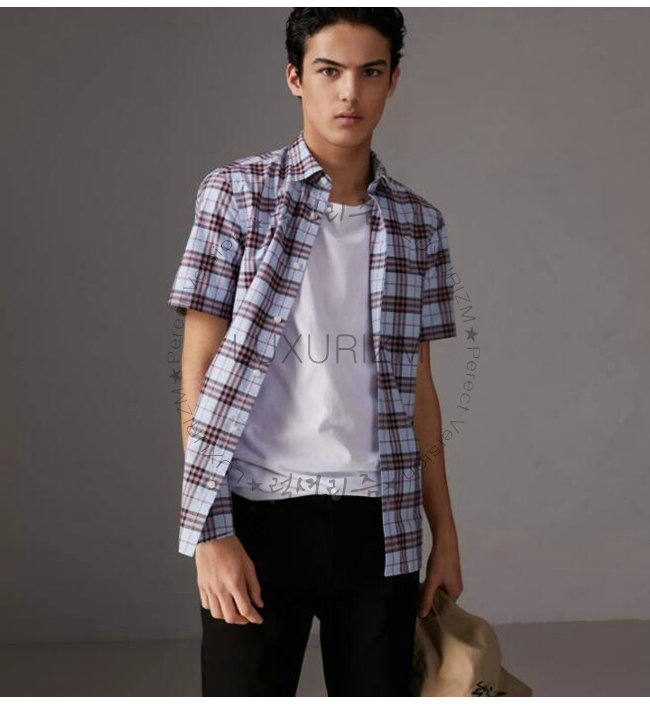 [스페셜오더]BURBERRY-80029271 버버리 쇼트 슬리브 라벤더 블루 체크 셔츠