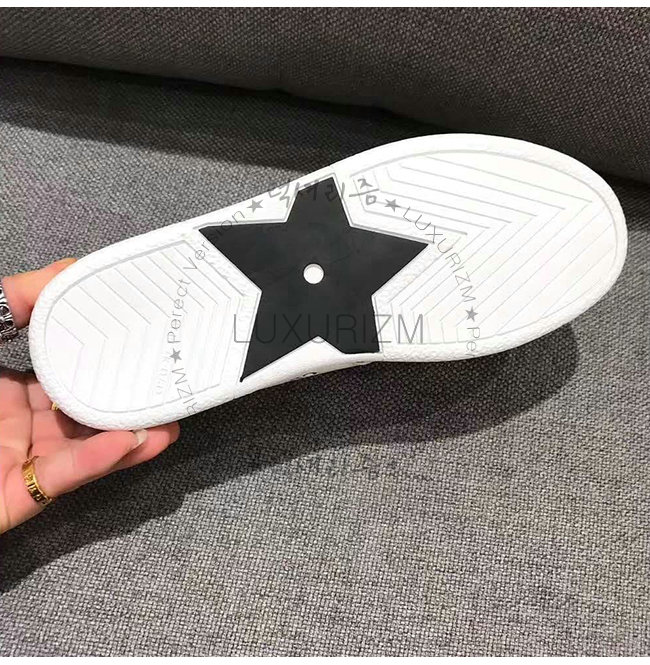 크리스챤 디올의 행운의 상징인 블랙 별 모티브가 장식된 화이트 러버 솔.