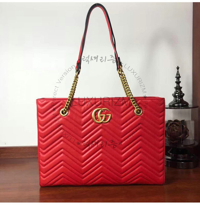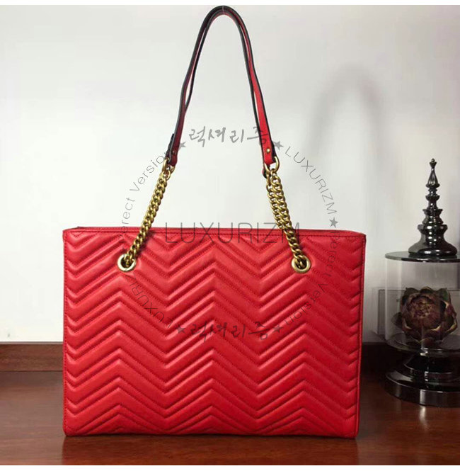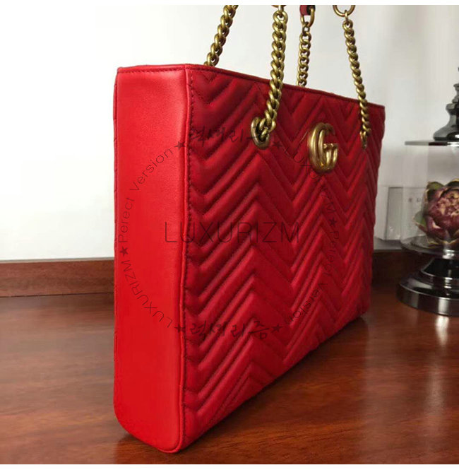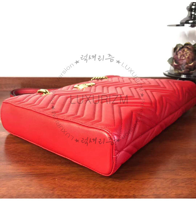 [스페셜오더]GUCCI-524578 6438 구찌 GG 마몽 레드 마틀라세 가죽 미디엄 토트백