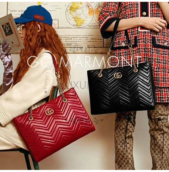 [스페셜오더]GUCCI-524578 1000 구찌 GG 마몽 블랙 마틀라세 가죽 미디엄 토트백 가격 : 400,000원