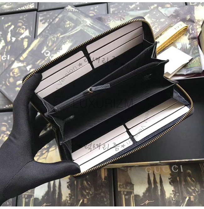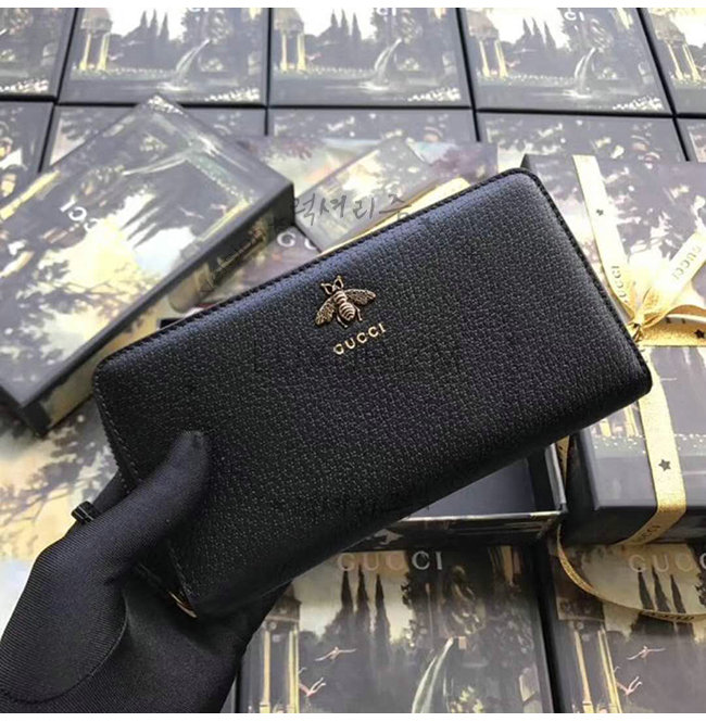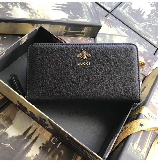 [스페셜오더]GUCCI-523667 1000 구찌 Animalier 블랙 가죽 집 어라운 월릿