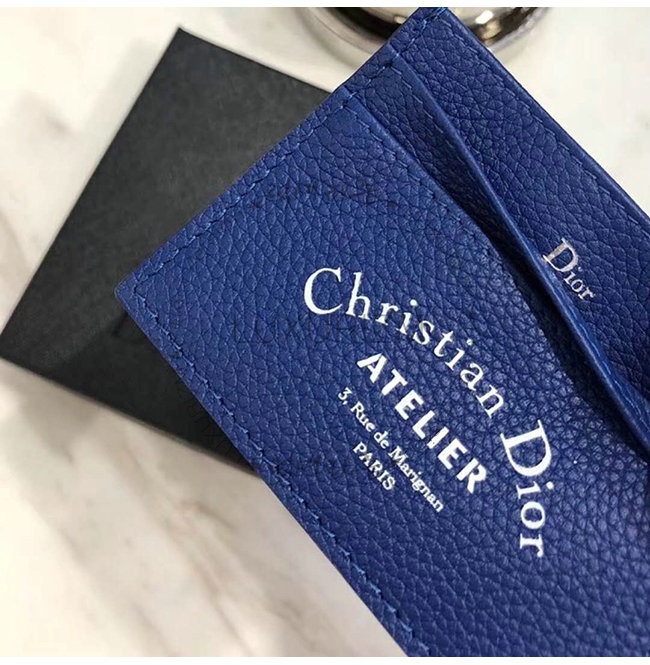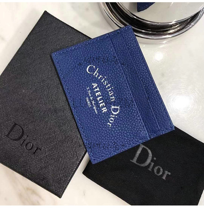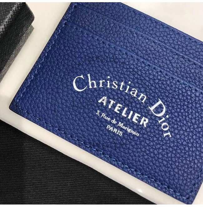 [스페셜오더]DIOR-2ATCH 디올 그레인 송아지 가죽 블루 카드 지갑