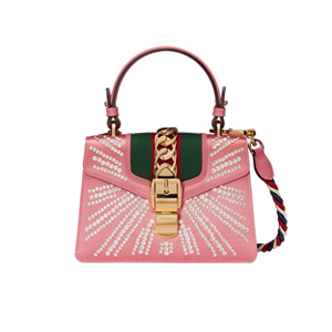 [스페셜오더]GUCCI-470270 6666 구찌 Sylvie 핑크 가죽 크리스탈 장식 미니 백