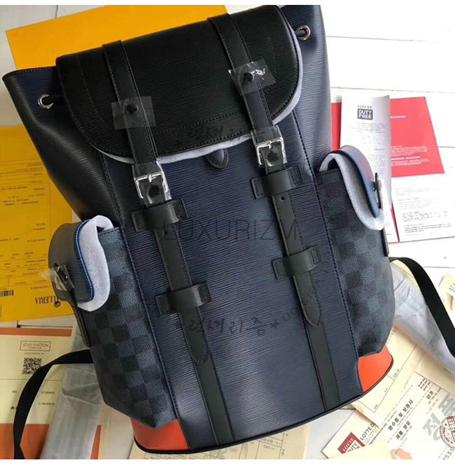 크리스토퍼 백팩 에피 패치워크 에디션입니다. 풍부한 색감을 보여주는 가죽과 다미에