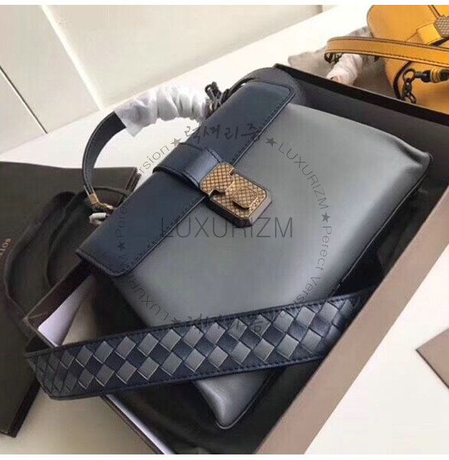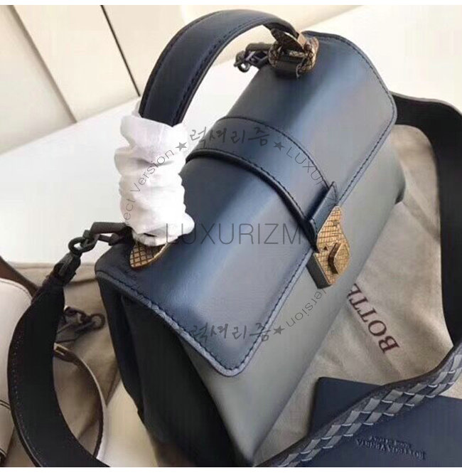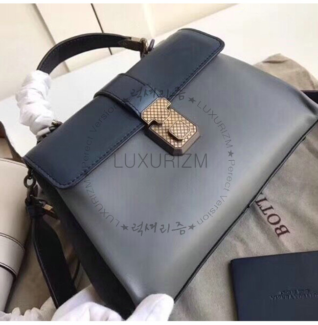 [스페셜오더]BOTTEGA VENETA-498992 보테가 베네타 네이비 차콜 카프스킨 스몰 피아짜 백