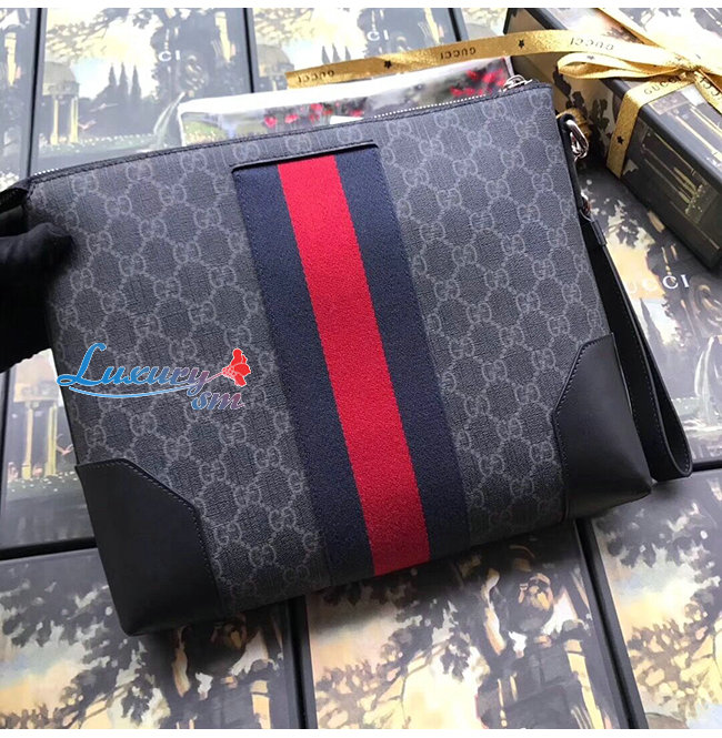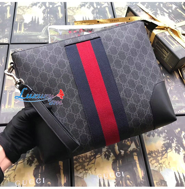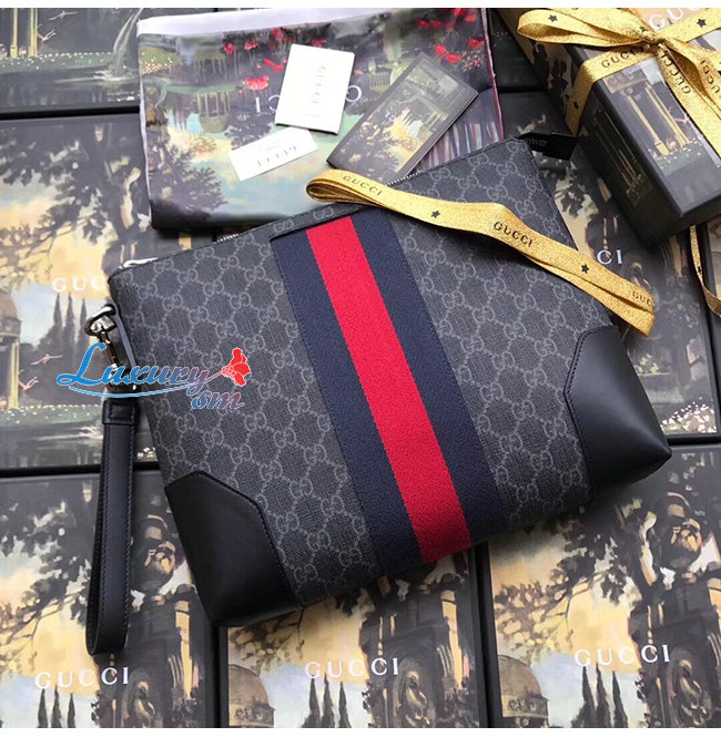 GUCCI-523603-1095 구찌 GG 수프림 캔버스 웹 스트라이프 클러치백