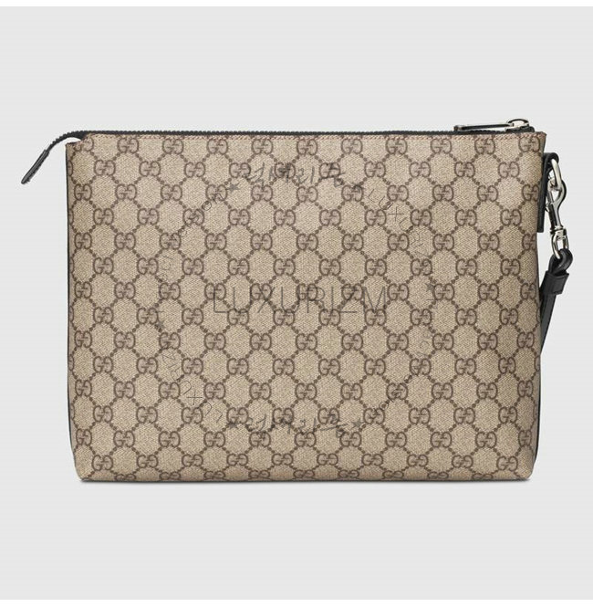 GUCCI-523293-9769 구찌 GG 슈프림 캔버스 가죽 태그 남성 파우치백