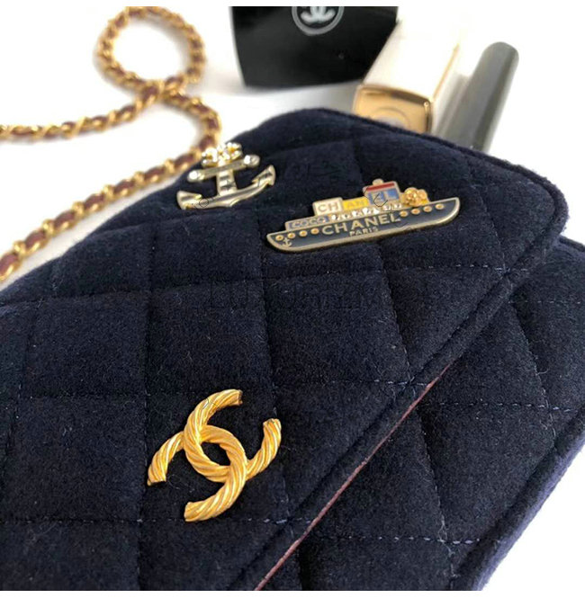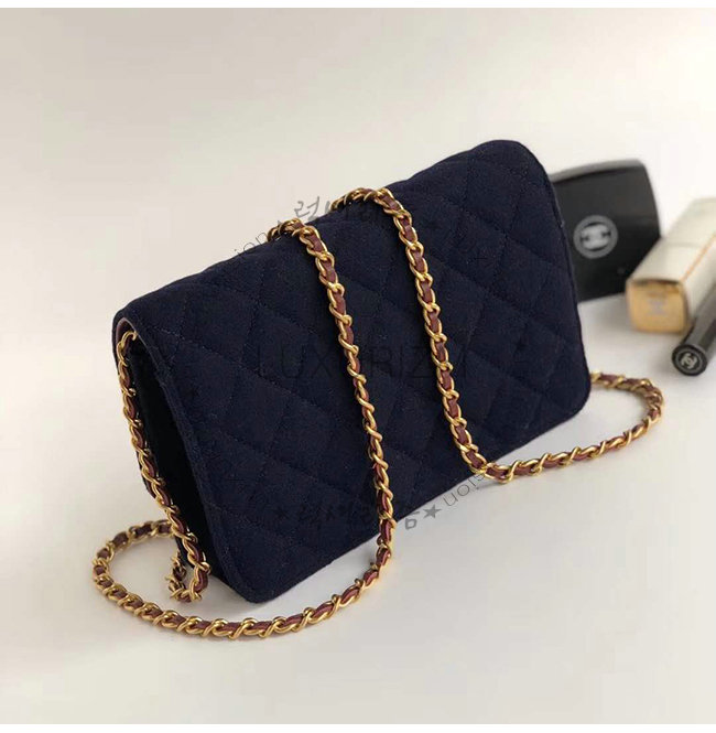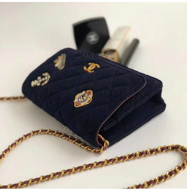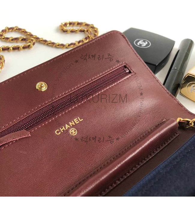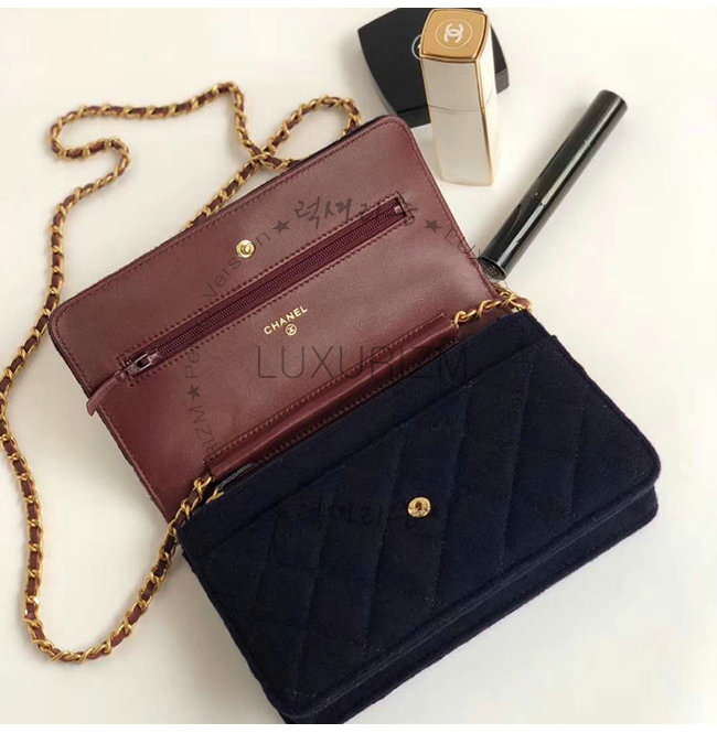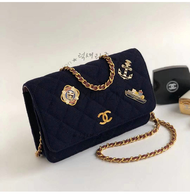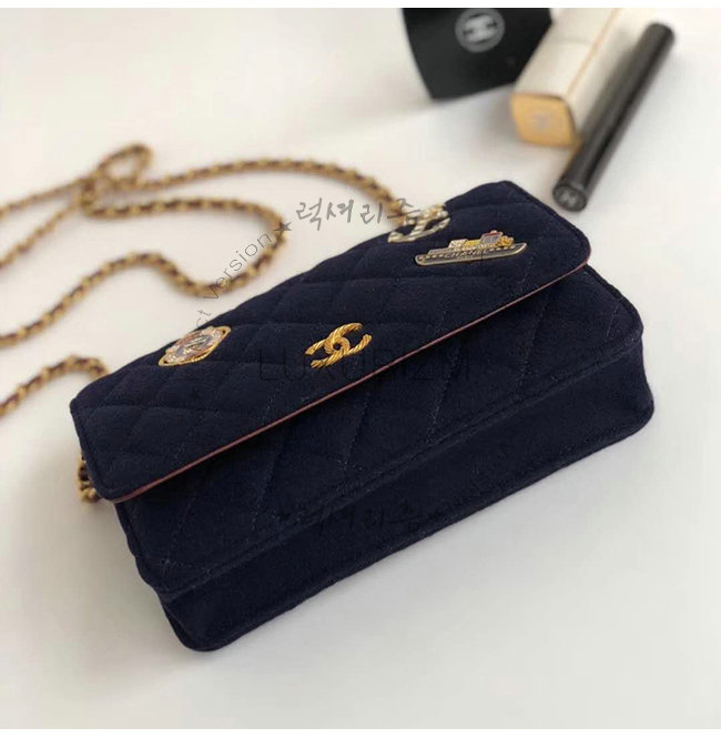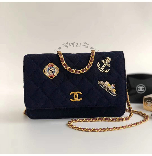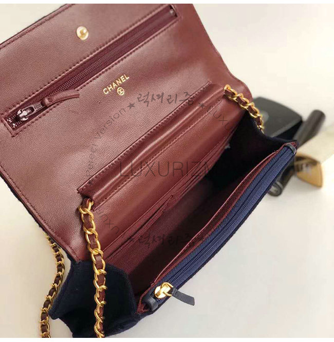 [스페셜오더]CHANEL-A70334 샤넬 네이비 울 카프스킨 스트라스 래커드 골드메탈 체인지갑