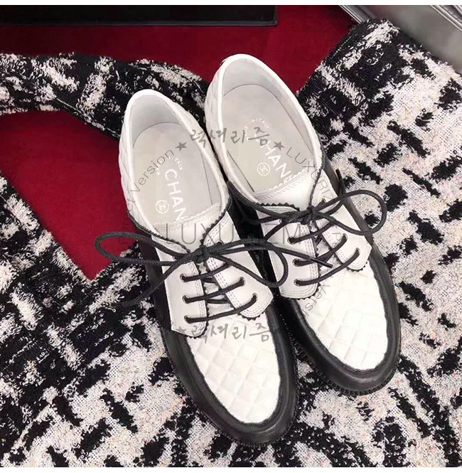 CHANEL-G33845 샤넬 화이트 램스킨 레이스업