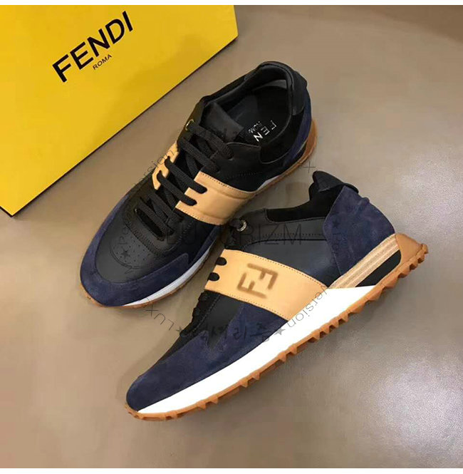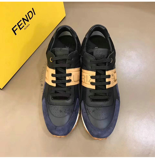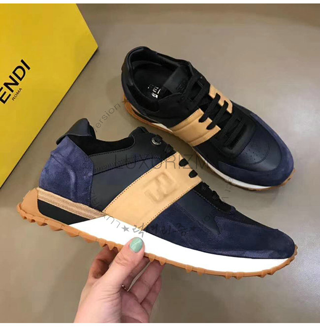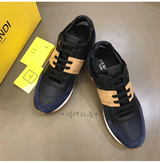 [스페셜오더]FENDI-7E1136 펜디 블랙 네이비 송아지 가죽 로우탑 스니커즈