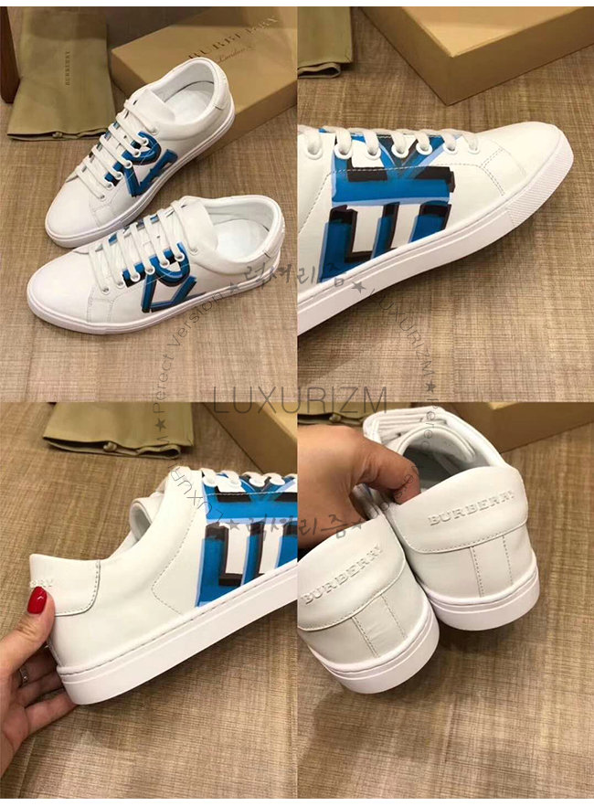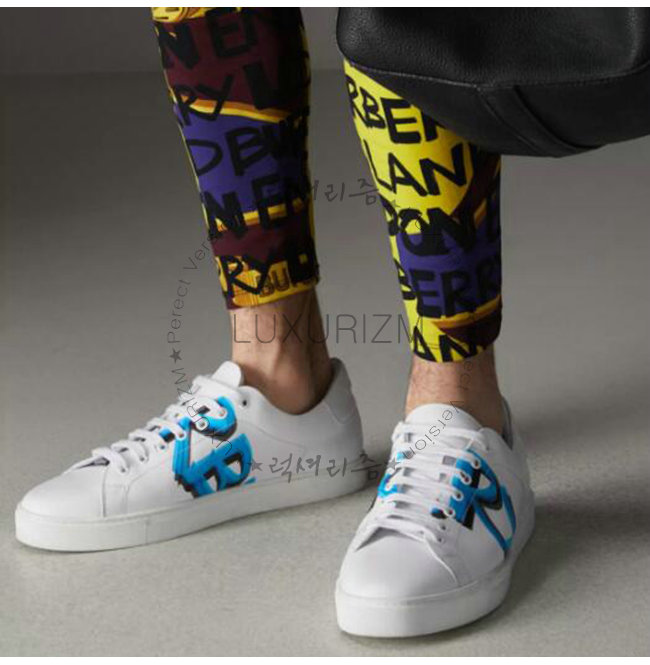 BURBERRY-40762151 버버리 로고 프린트 가죽 스니커즈