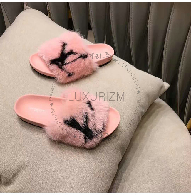 LOUIS VUITTON-1A4G9P 루이비통 밍크 퍼 봄 디아 플랫 뮬