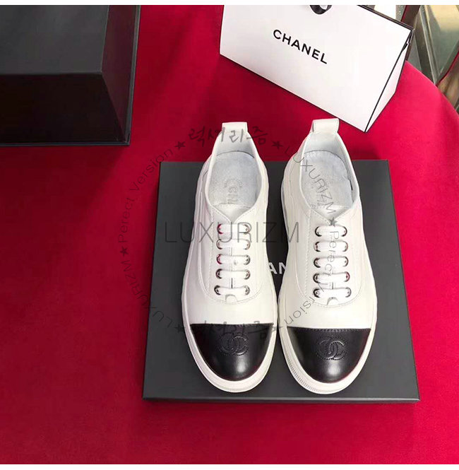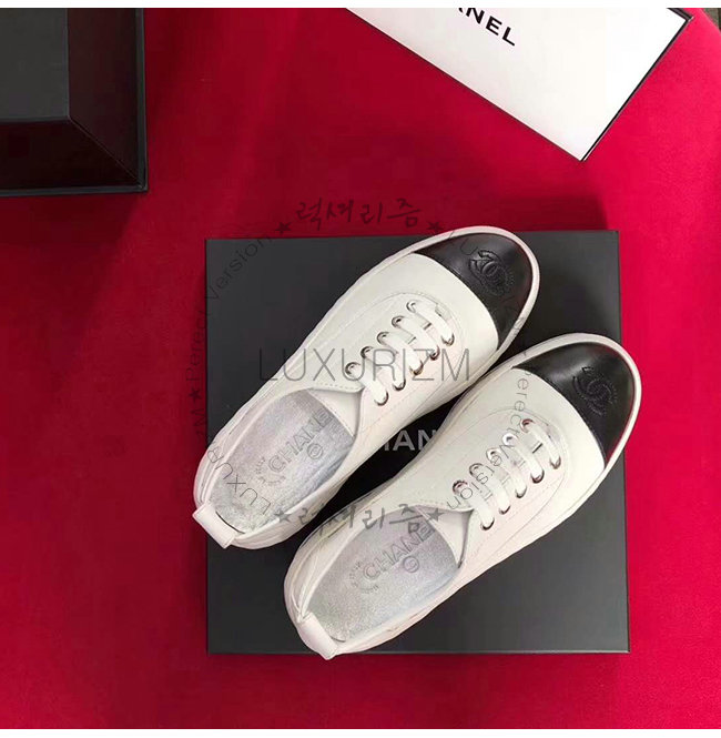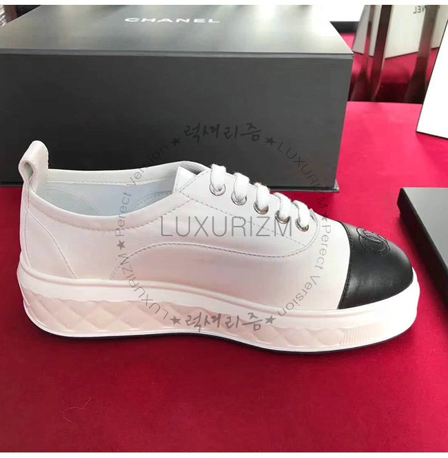 CHANEL-G33909 샤넬 화이트 램스킨 스니커즈