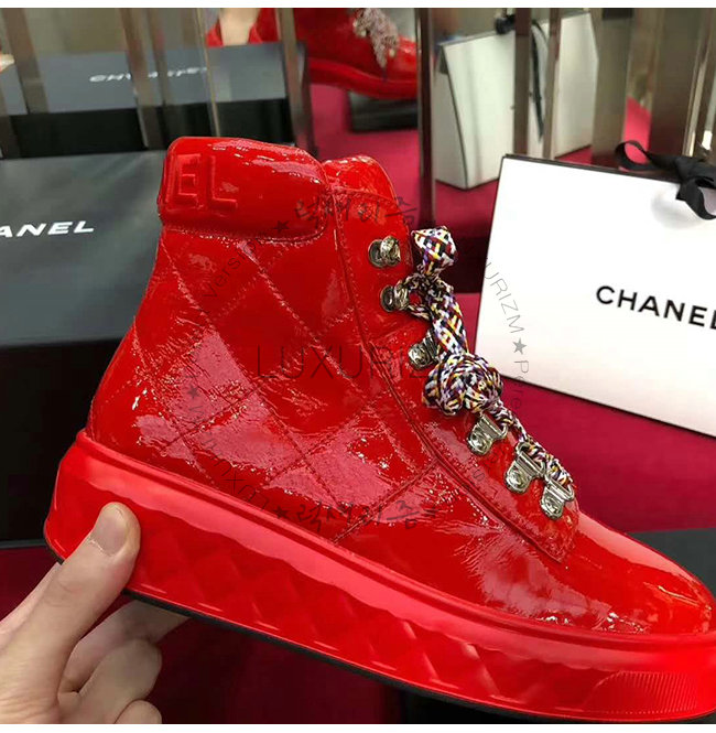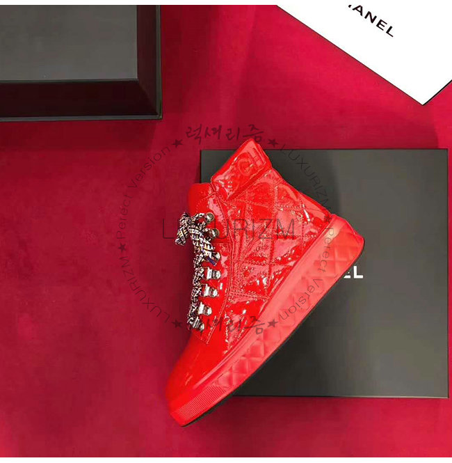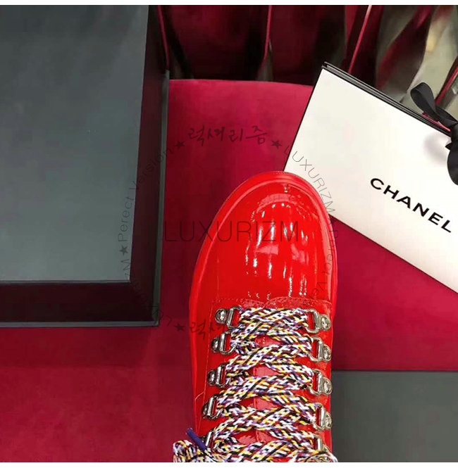 CHANEL-G33925 샤넬 레드 페이턴트 카프스킨 레이스업