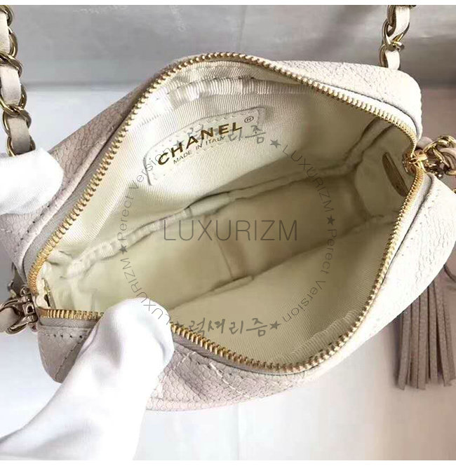 [스페셜오더]CHANEL-A57717 샤넬 화이트 그레인드 카프스킨 골드메탈 스몰 카메라 케이스