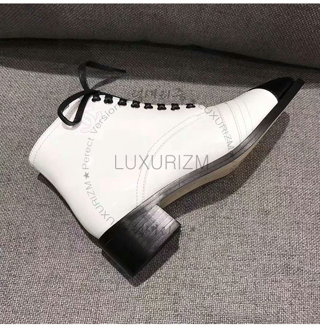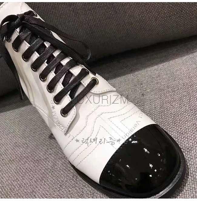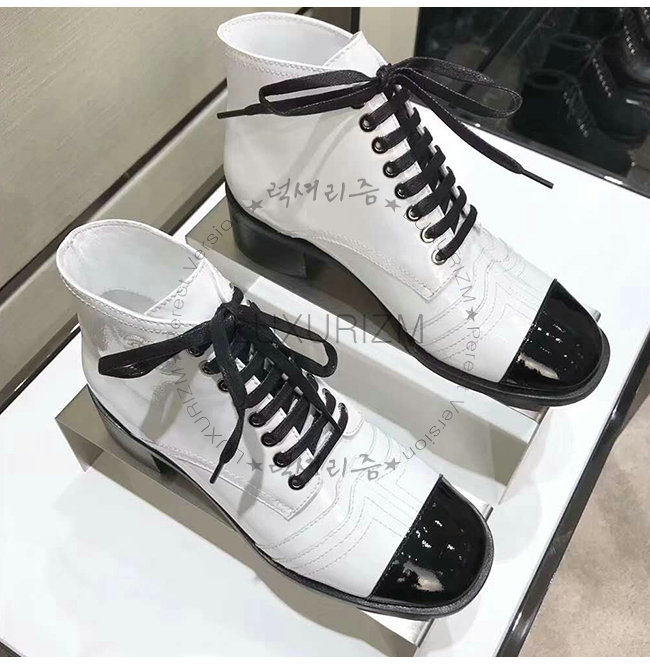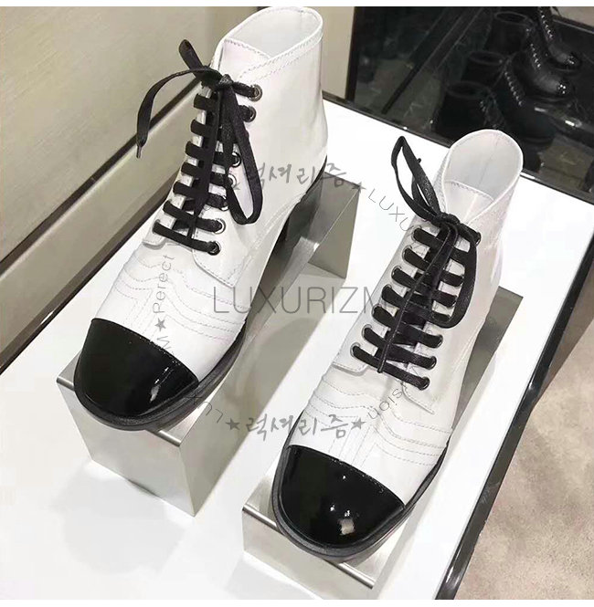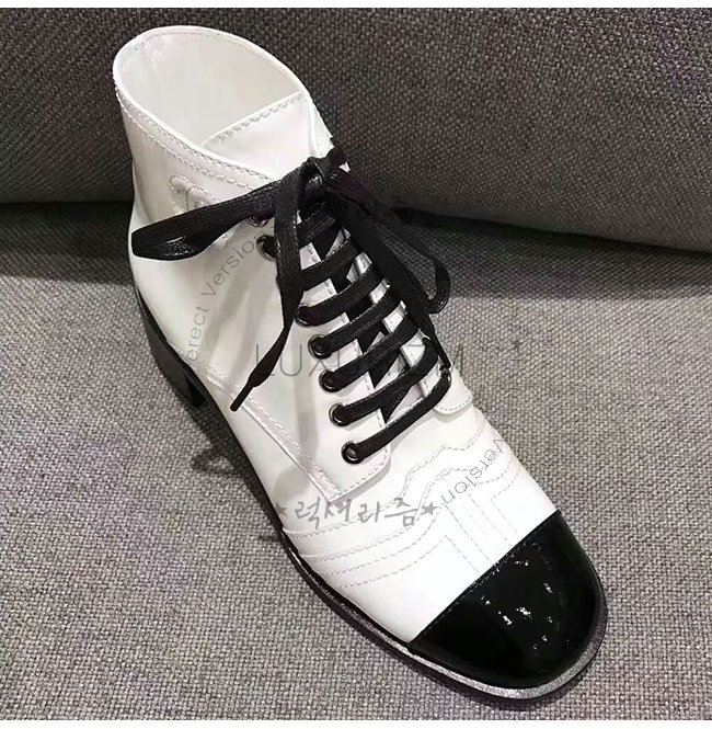 CHANEL-G33855 샤넬 화이트 페이턴트 카프스킨 레이스업