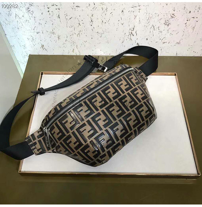 [스페셜오더]FENDI-7VA434 펜디 브라운 송아지 가죽 더블 F 로고 엠보싱 벨트백