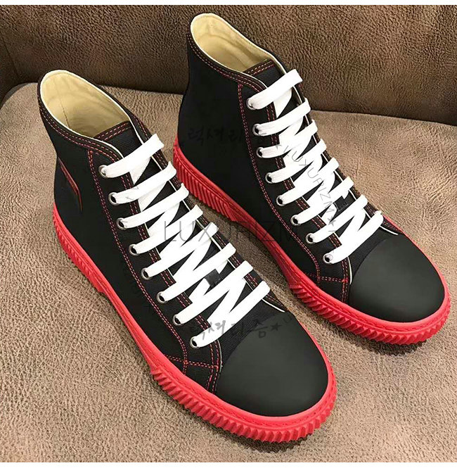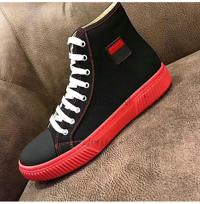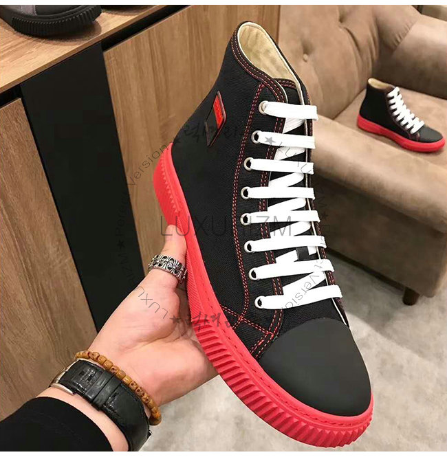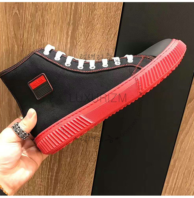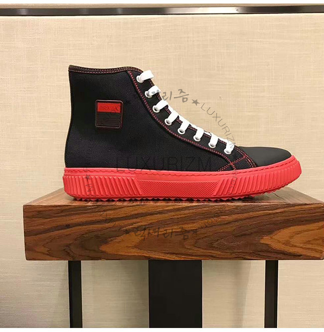 PRADA-4T3218 프라다 블랙 코튼 하이탑 스니커즈