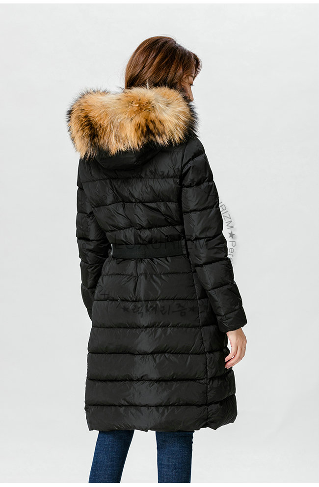 벨트는 여성 피규어 모양을 완성시킵니다.후드에 절묘한 모피와함께