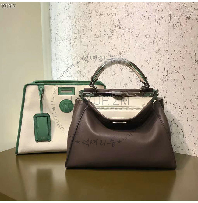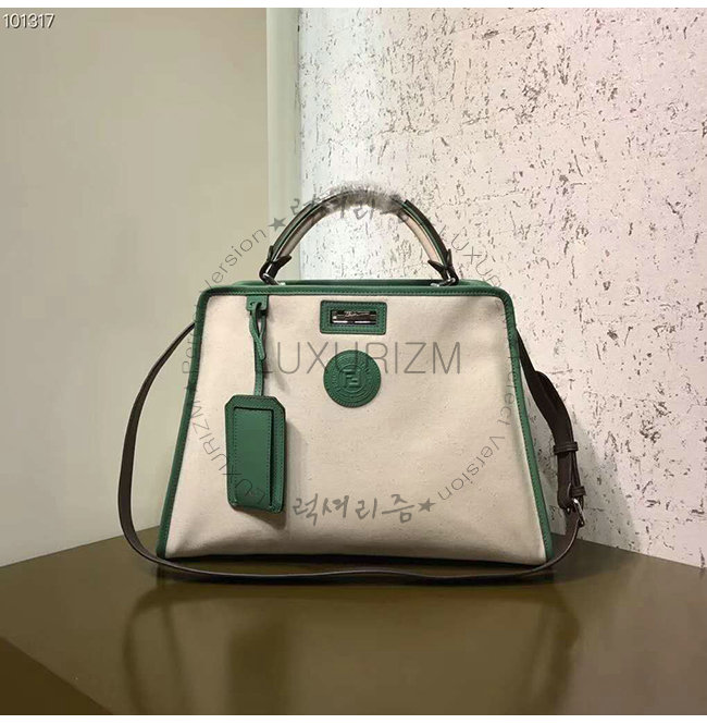 [스페셜오더]FENDI-8BN307 펜디 화이트 글레이즈드 패브릭 그린 가죽 트리밍 피카부 디펜더