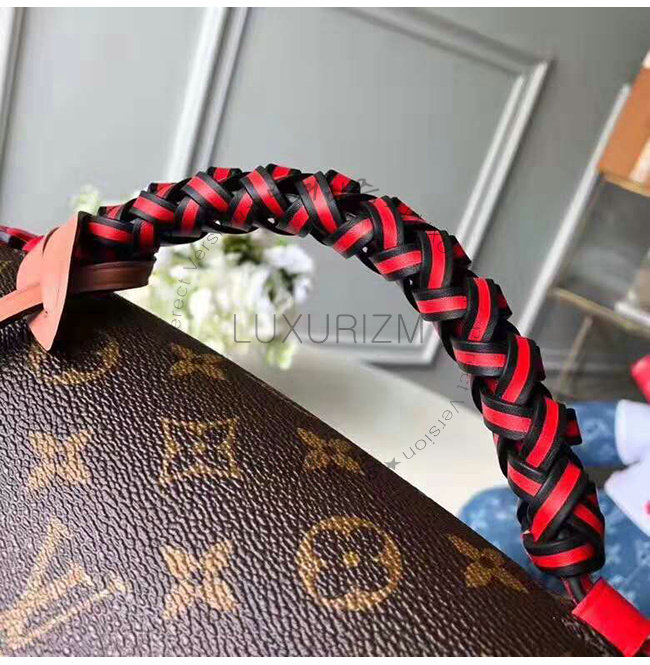 코클리코 레드 모노그램 코팅 캔버스 유연한 카우하이드 가죽 트리밍 극세사 안감 골드 컬러 마감