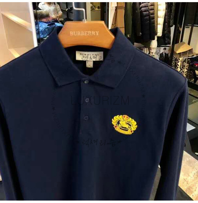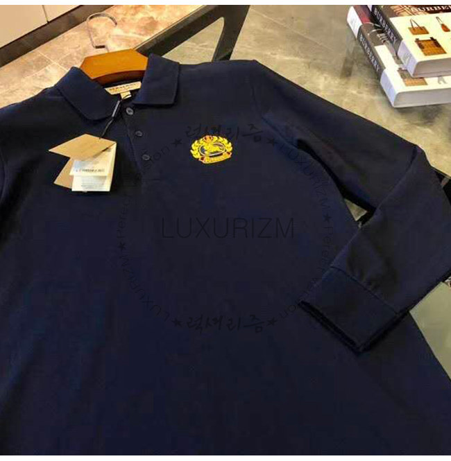 [스페셜오더]BURBERRY-80036001 버버리 네이비 코튼 롱 슬리브 아카이브 로고 피케 폴로 셔츠