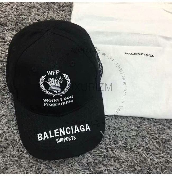 BALENCIAGA-540013 발렌시아가 블랙 WORLD FOOD PROGRAMME 로고 장식 클래식 베이스볼 캡