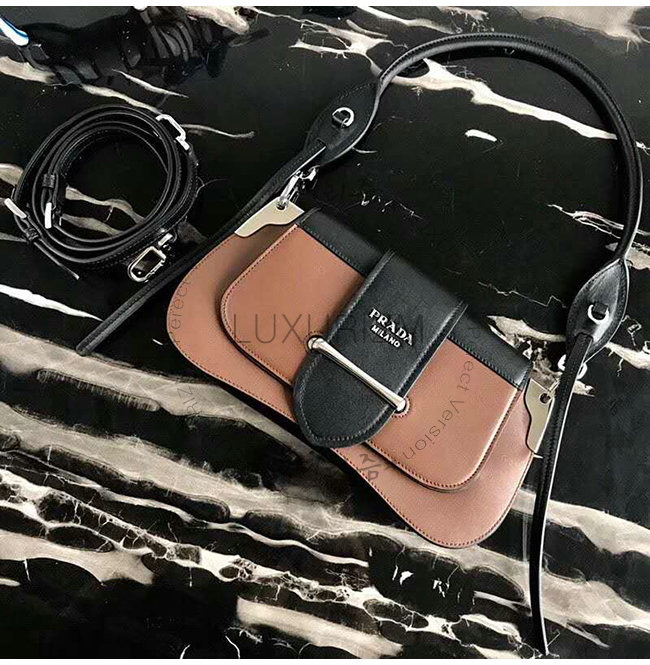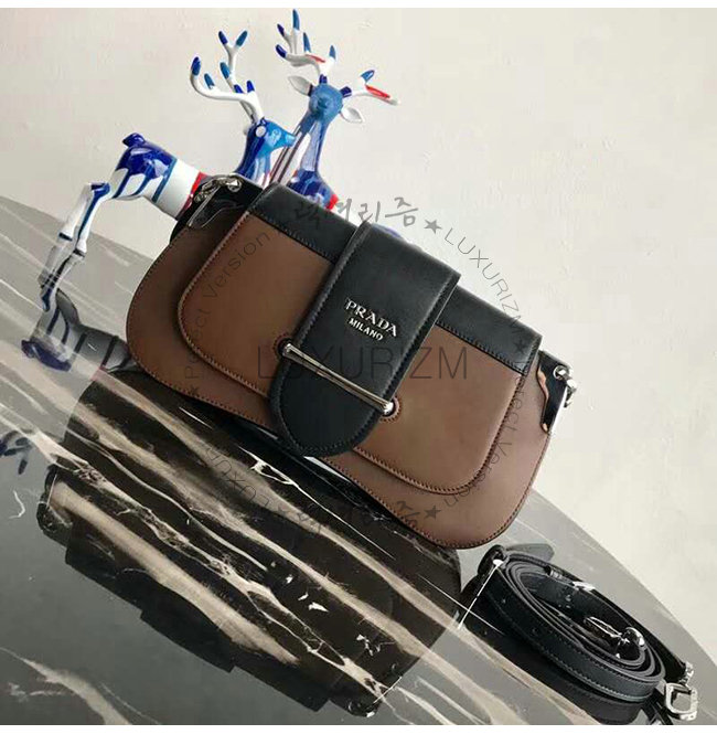 [스페셜오더]PRADA-1BD168 프라다 브라운 송아지 가죽 Sidonie 플랩 숄더백