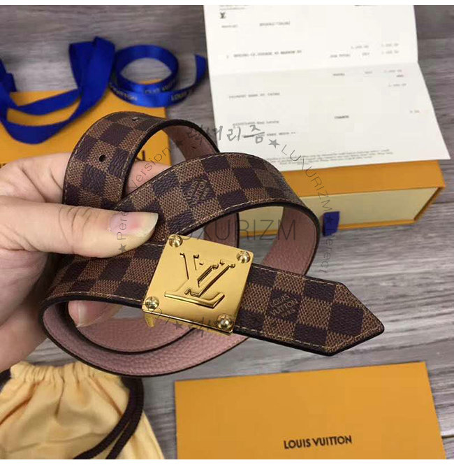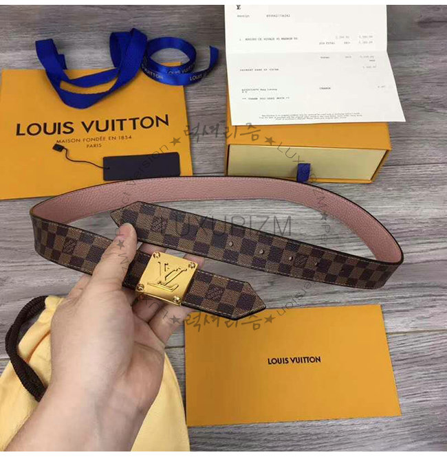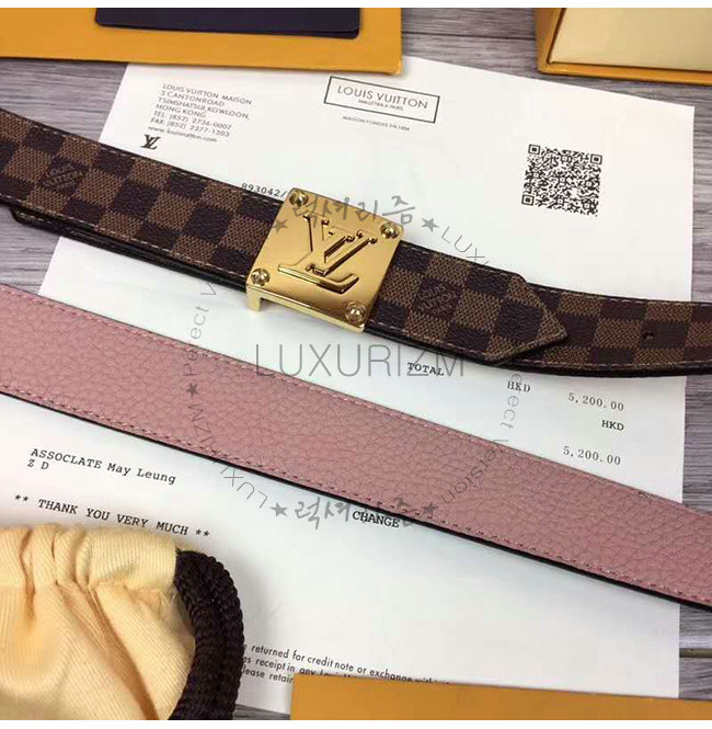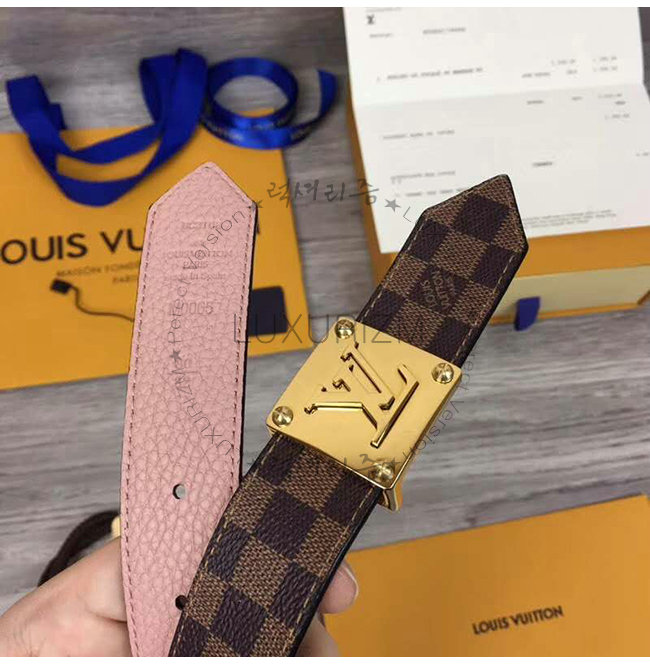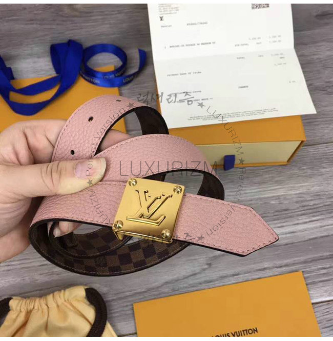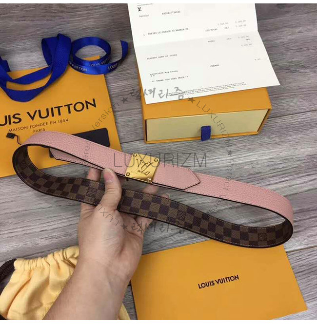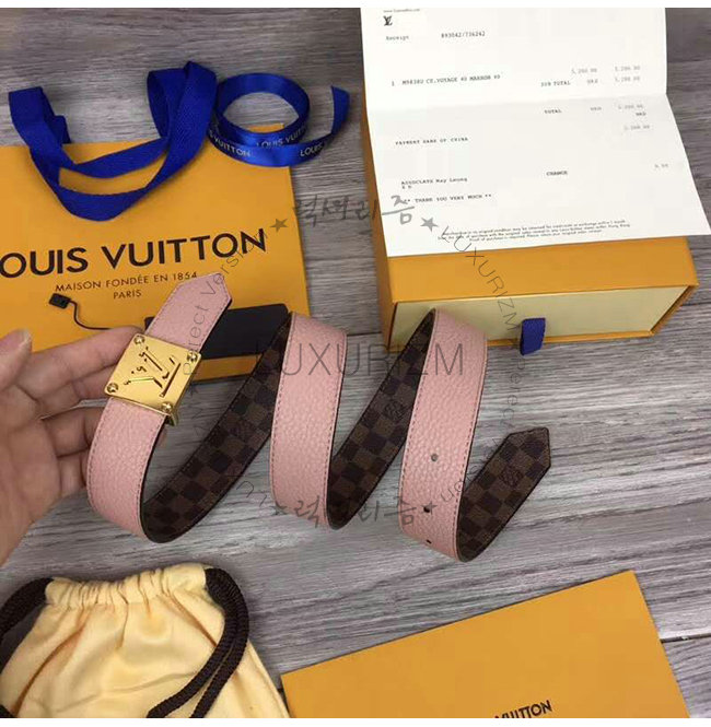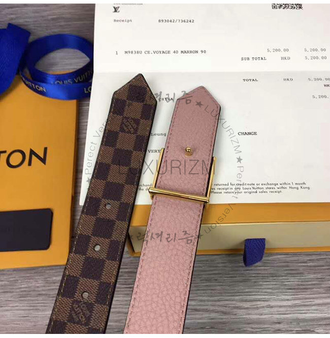 [스페셜오더]LOUIS VUITTON-M0065U 루이비통 다미에 에벤 핑크 송아지 가죽 리버서블 벨트 30MM
