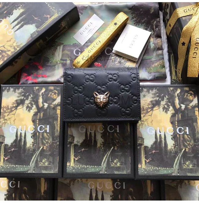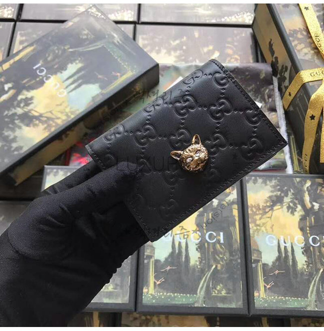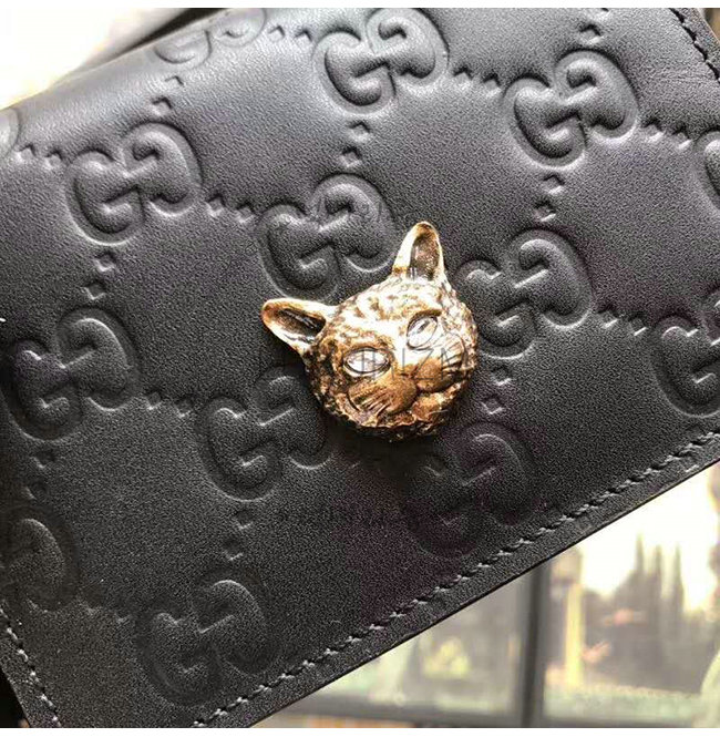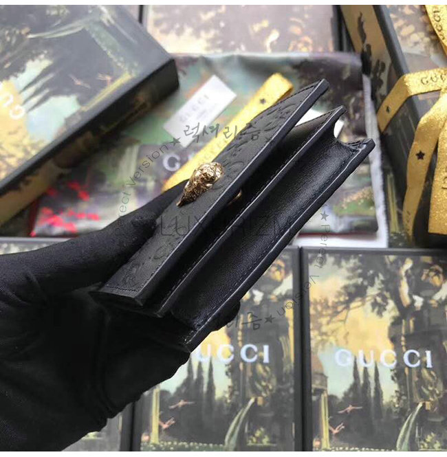 [스페셜오더]GUCCI-548057 1081 구찌 블랙 Gucci 시그니처 가죽 캣 장식 카드 케이스