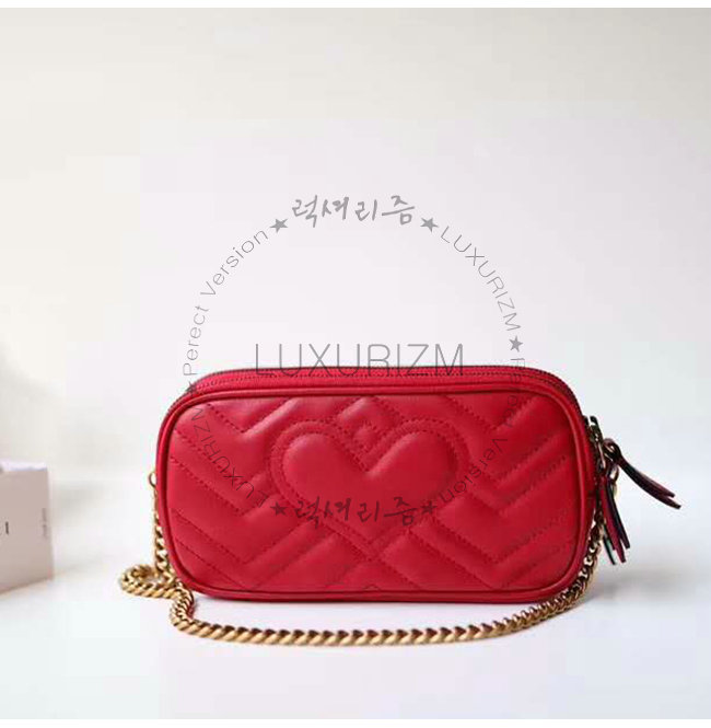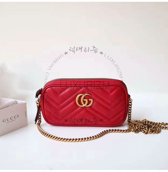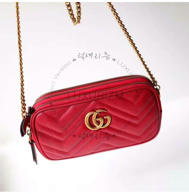 [스페셜오더]GUCCI-546581 6433 구찌 GG 마몽 레드 마틀라세 쉐브론 가죽 미니 체인백