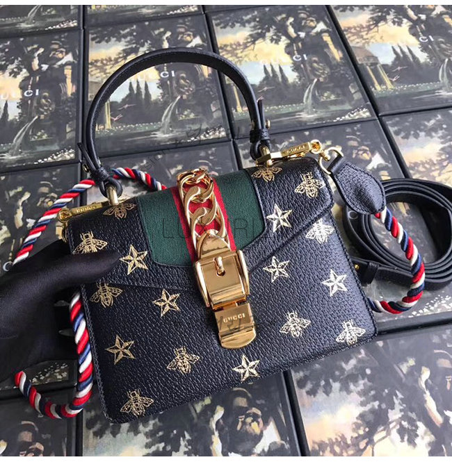 [스페셜오더]GUCCI-470270 8015 구찌 Sylvie 실비 미니 Web 디테일 골드 체인,버클 장식 탑 핸들 백 블랙