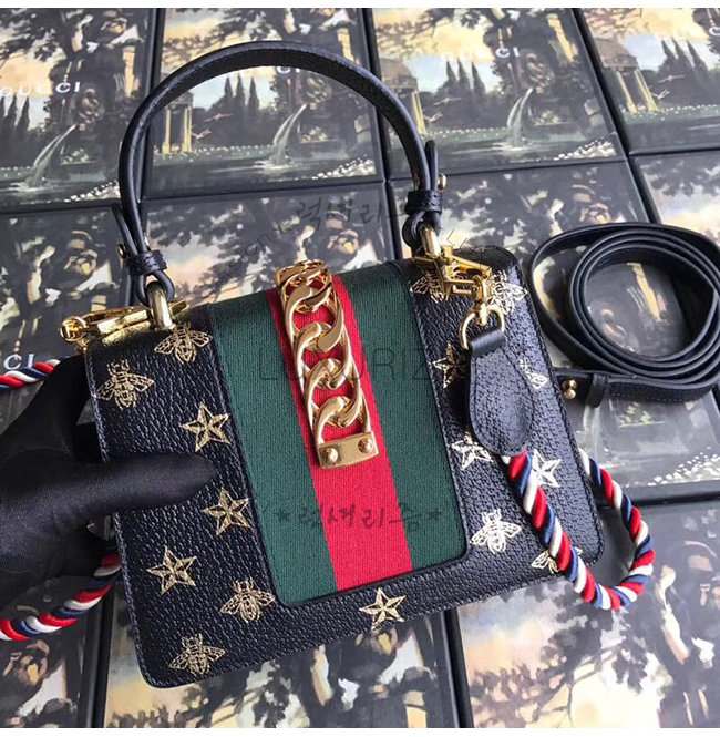 [스페셜오더]GUCCI-470270 8720 구찌 Sylvie 블랙 가죽 크리스탈 장식 미니 백