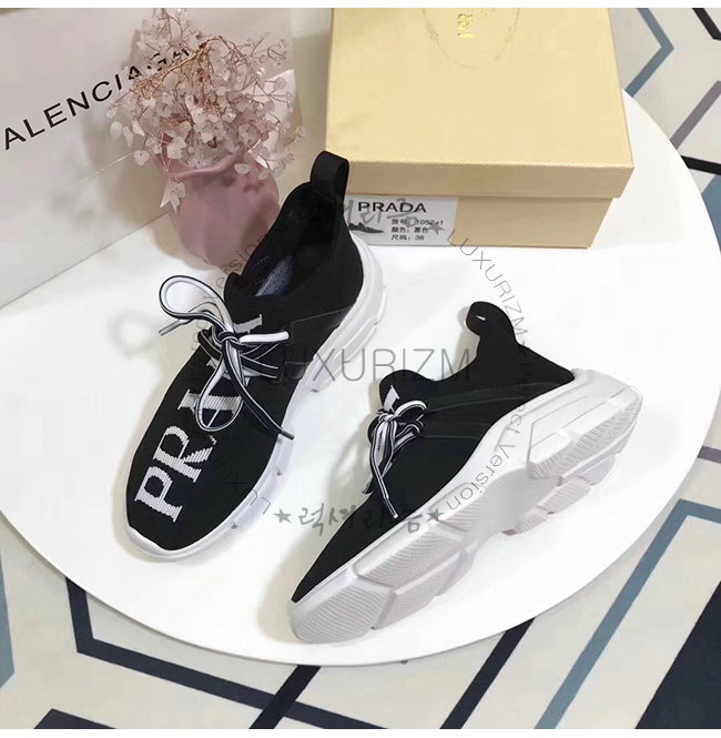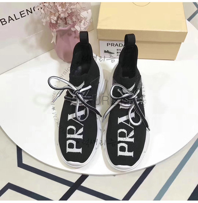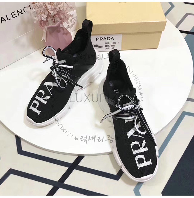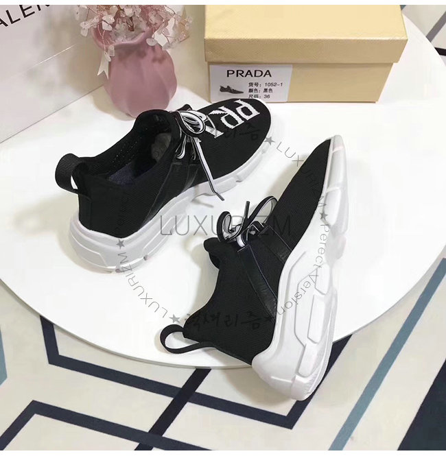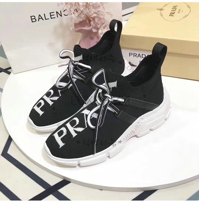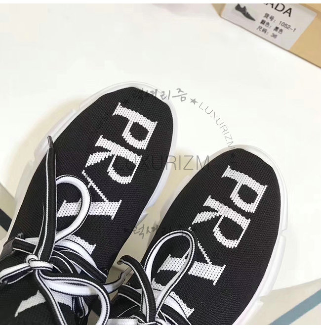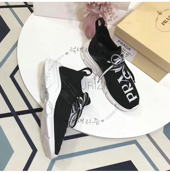 PRADA-1E344L 프라다 블랙 니트 페브릭 인타르시아 로고 스니커즈
