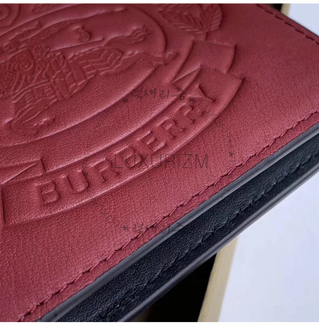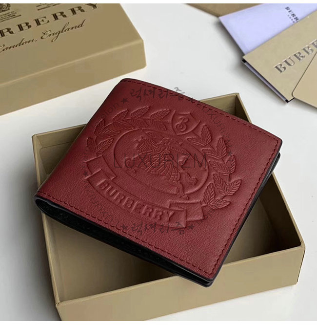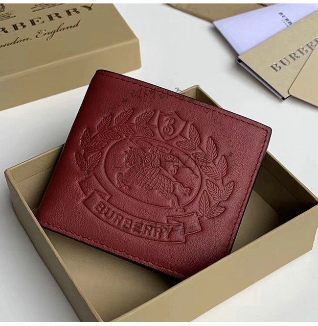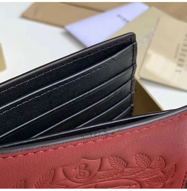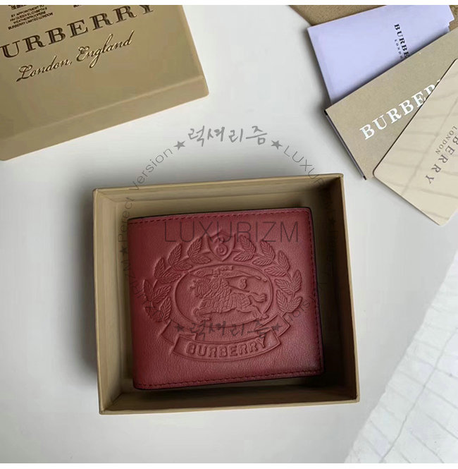 [스페셜오더]BURBERRY-40778291 버버리 레드 송아지 가죽 엠보싱 크레스트 바이폴드 지갑