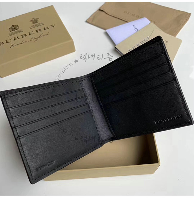 [스페셜오더]BURBERRY-40778291 버버리 블랙 송아지 가죽 엠보싱 크레스트 바이폴드 지갑 가격 : 180,000원