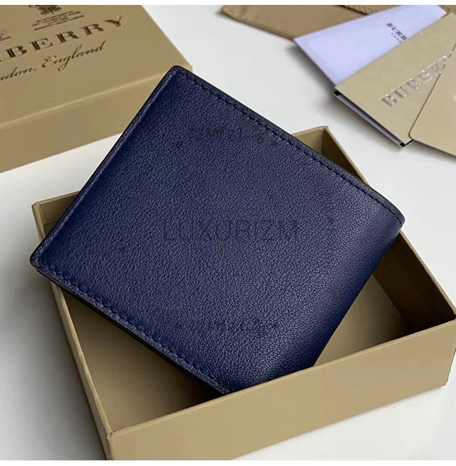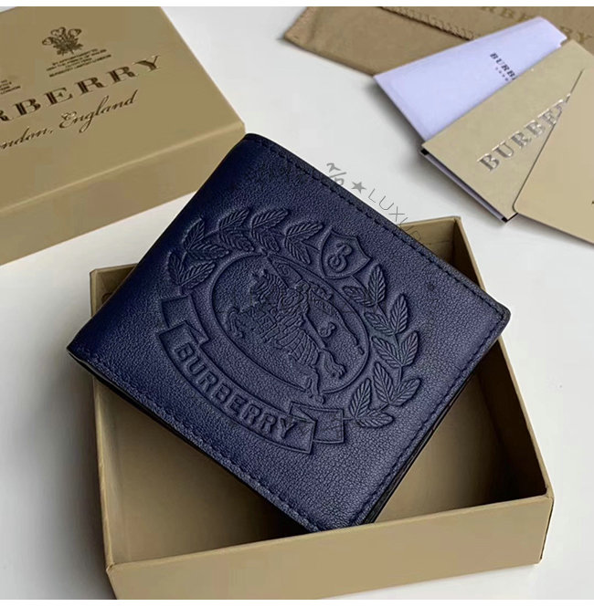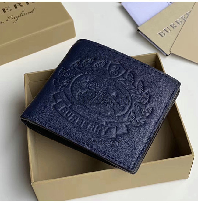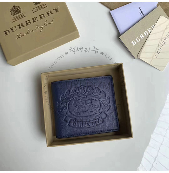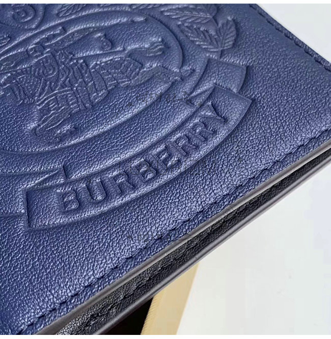 [스페셜오더]BURBERRY-40778291 버버리 네이비 송아지 가죽 엠보싱 크레스트 바이폴드 지갑