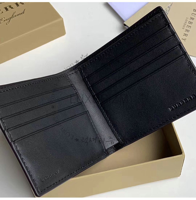 [스페셜오더]BURBERRY-40778291 버버리 블랙 송아지 가죽 엠보싱 크레스트 바이폴드 지갑 가격 : 180,000원