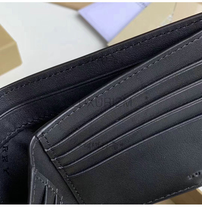 송아지 가죽 소재 바이폴드 지갑으로 버버리 크레스트