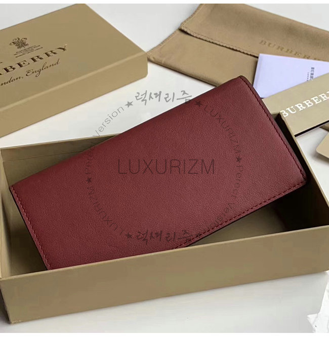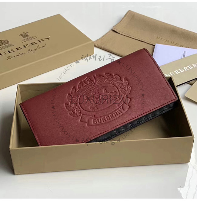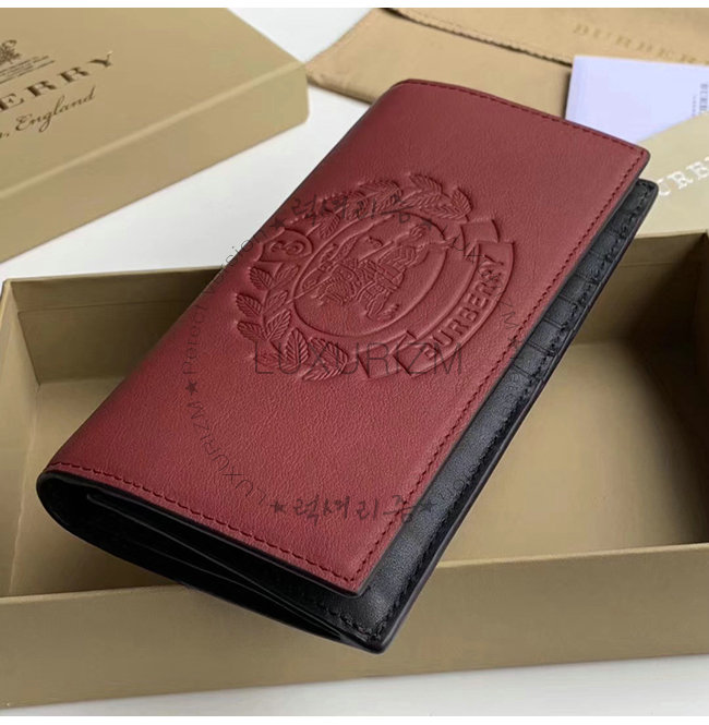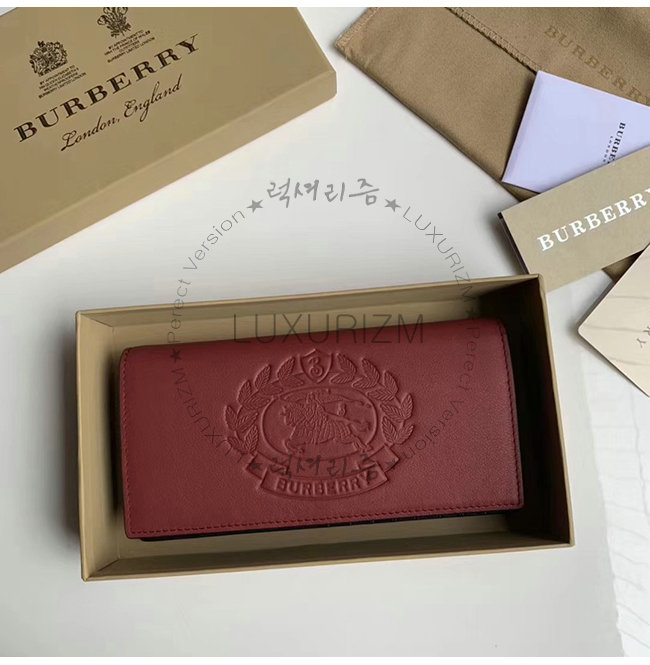 [스페셜오더]BURBERRY-40779851 버버리 레드 송아지 가죽 엠보싱 크레스트 장지갑
