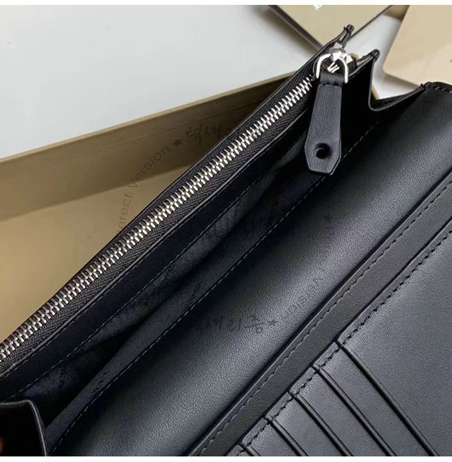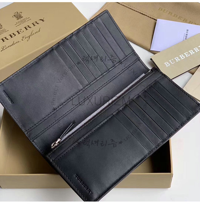 [스페셜오더]BURBERRY-40779851 버버리 블랙 송아지 가죽 엠보싱 크레스트 장지갑