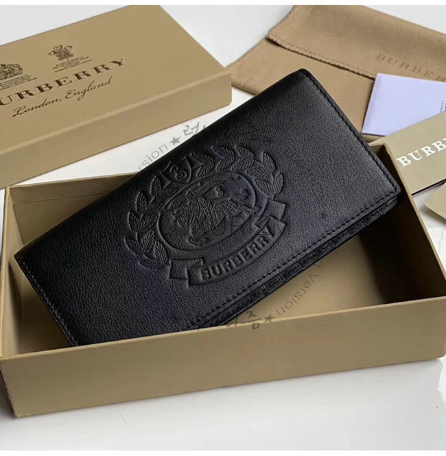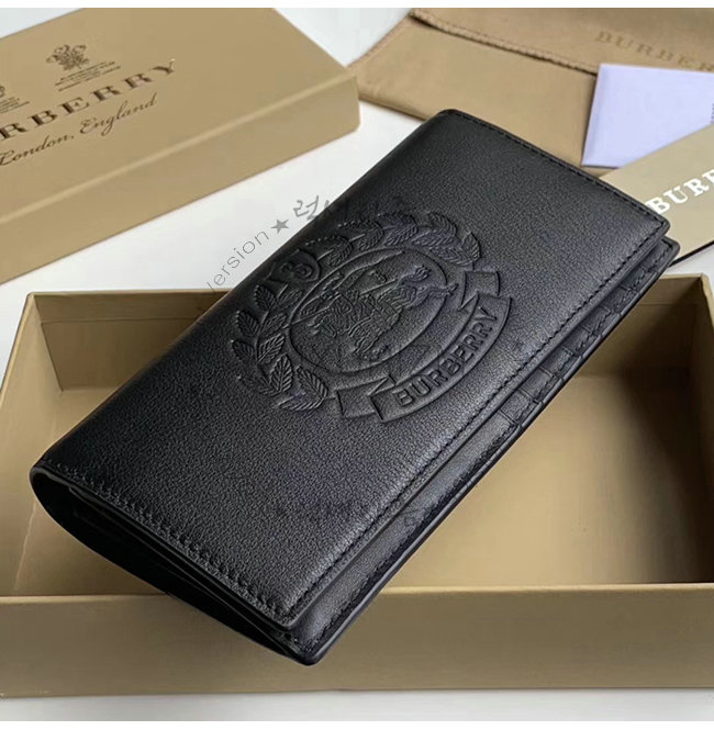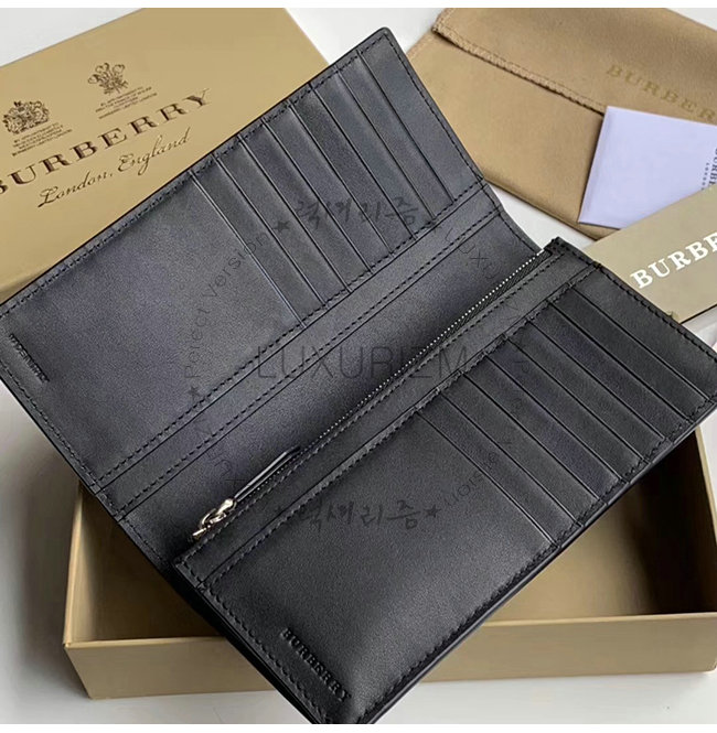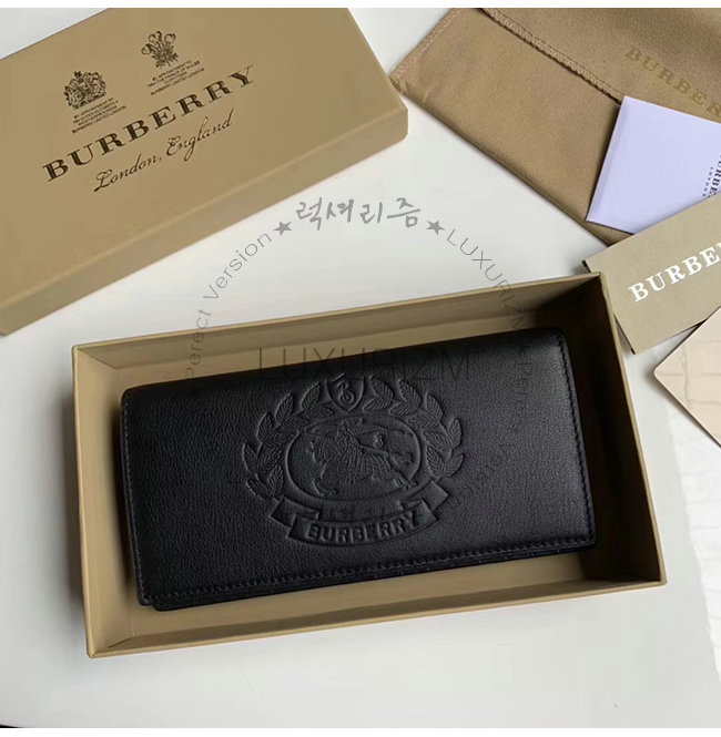 [스페셜오더]BURBERRY-40779851 버버리 블랙 송아지 가죽 엠보싱 크레스트 장지갑
