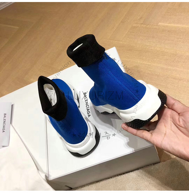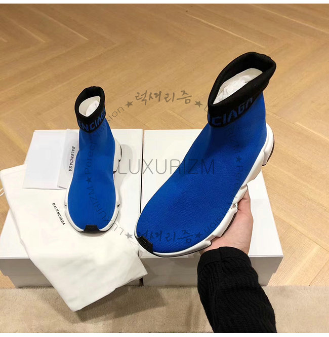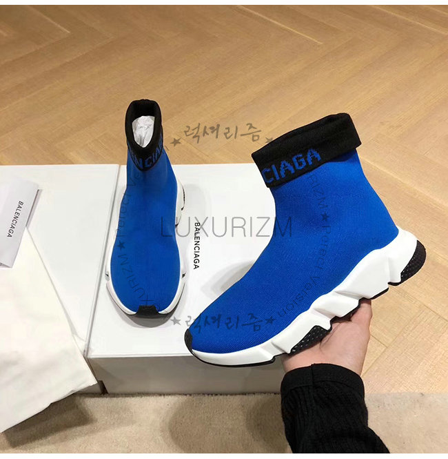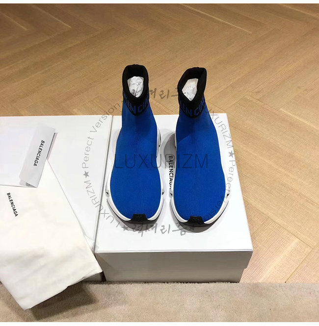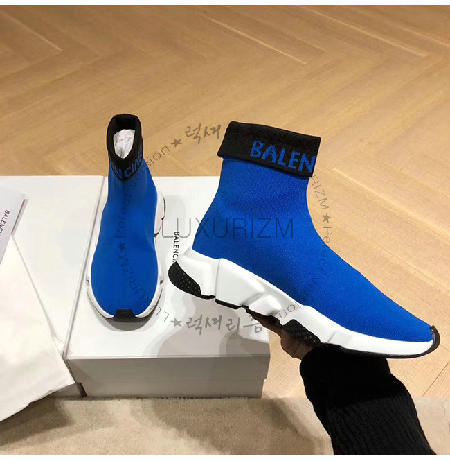 BALENCIAGA-525725 발렌시아가 블루 니트 로고 장식 스피드 트레이너(남여공용)