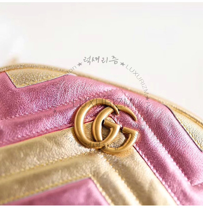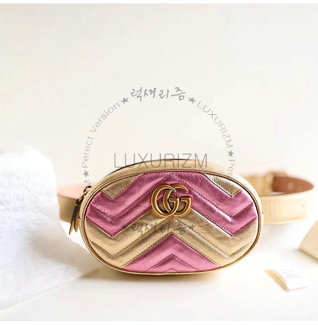 [스페셜오더]GUCCI-476434 8088 구찌 GG 마몽 메탈릭 마틀라세 쉐브론 가죽 벨트백