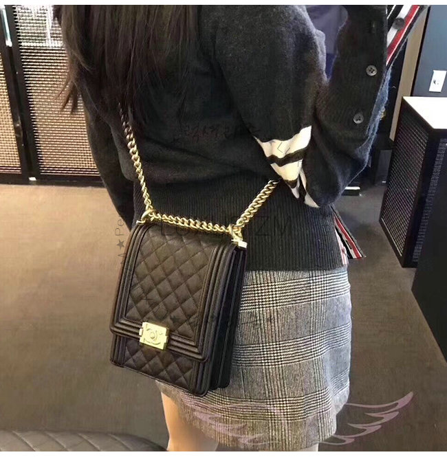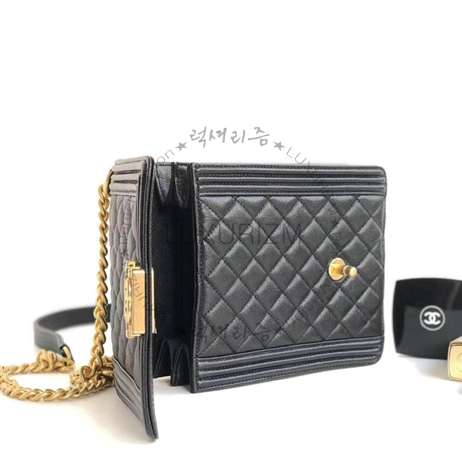 [스페셜오더]CHANEL-AS0130 샤넬 블랙 그레인드 카프스킨 골드메탈 보이 샤넬 플랩백