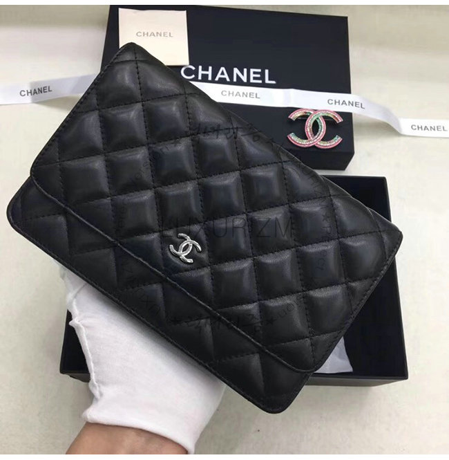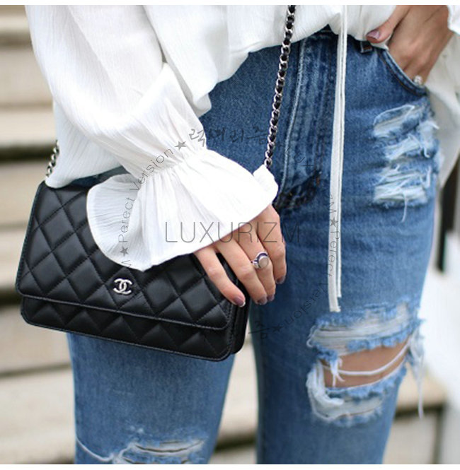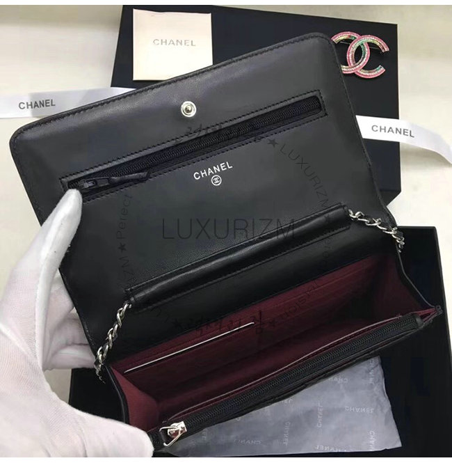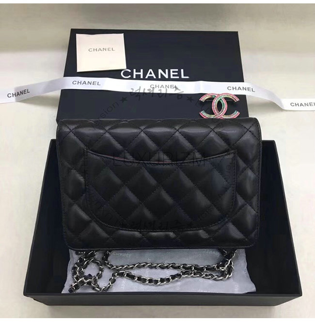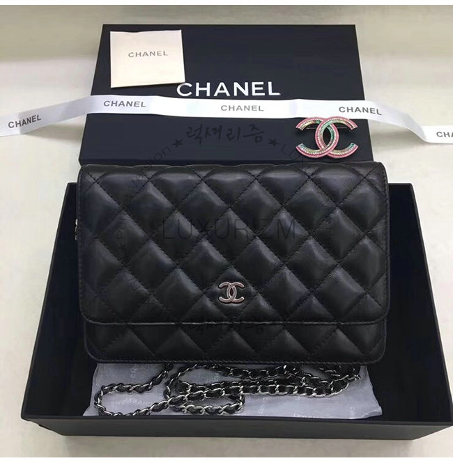 [스페셜오더]CHANEL-A33814 샤넬 클래식 램스킨 블랙 실버메탈 체인 지갑
