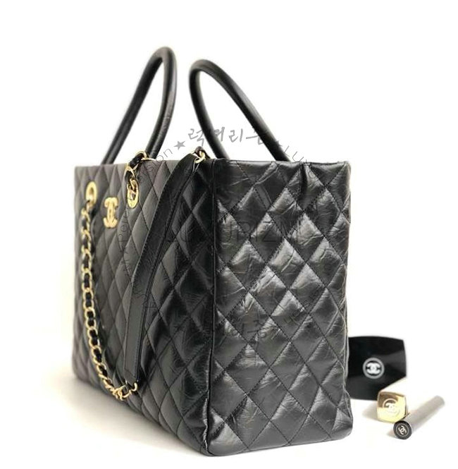 [스페셜오더]CHANEL-A93525 샤넬 블랙 빈티지 카프스킨 골드메탈 라지 토트백