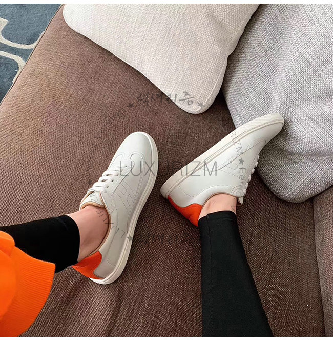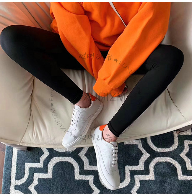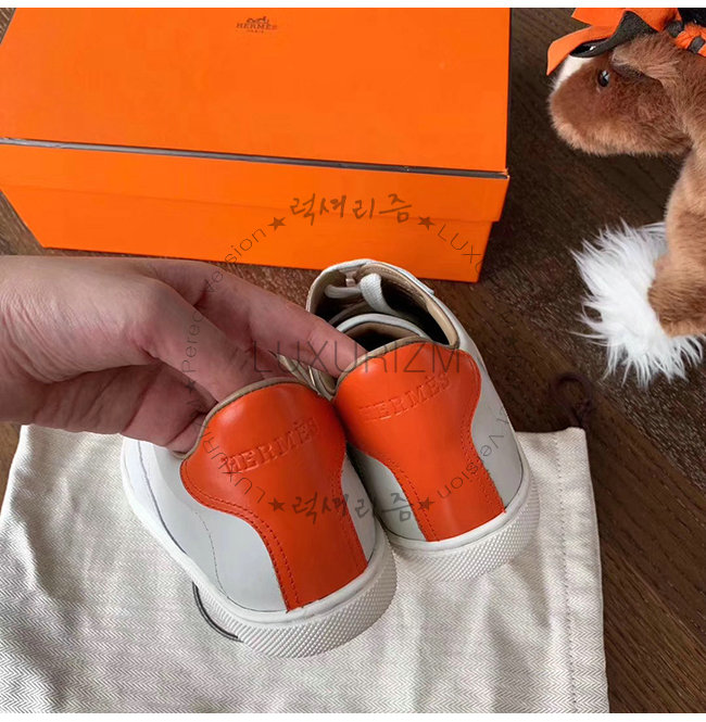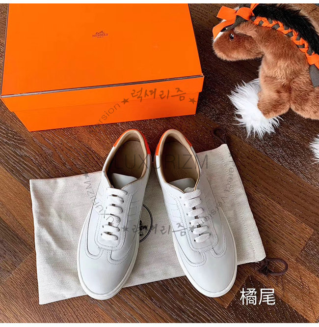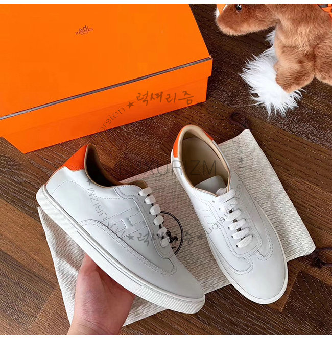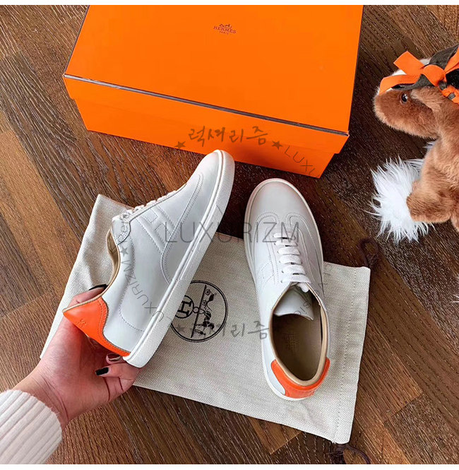 에르메스 카프스킨 운동화와 두꺼운 고무 밑창.